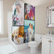 Personalized 4 photos template shower curtain featuring 4 changeable photos and a rounded black frame. A great unique bathroom gift for a loved one in the family.