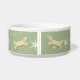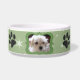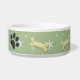 Adorable ceramic pet bowl for your dog. Pastel green star pattern on has small dog bones and paw print decorations. Gel style border is ready to frame your dogs photo for a special custom touch. Click the customize button on lower right side of this preview to access tool to upload and replace this pet placeholder photo with your dogs photo. Pink version and Cat bowl size too. Matching Dog Treat Jar available in my store.