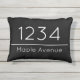 This home address pillow is black. You can edit the white text to show your street address. Digits for your house number are above a horizontal line and text for your street name.