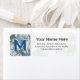 Easily change the initial, name, and address using the text templates provided. This is nature, abstract photography of frost frozen on a blue metallic background with a bokeh effect between the white flakes. This frozen winter macro photo will make a unique design for your out-going mail.