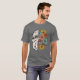 My 11 yo wore adult XL (5’7” 165#). The 8yo is small framed. She wore adult small and tied it in the back. Grandma wore adult large with long sleeve shirt underneath. Tall girl adult medium. Dark haired male adult large. Good quality dark Heather gray, Gildan brand shirt. -it was next up from basic choice and cost about $20 per shirt. Not too thick or thin. Washed and dried well, no major shrinkage. Not see-through. Can wear a bra under it fine. Screen print is just as shown and well done, front and back.