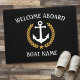 Your Boat Name Anchor Laurel Welcome Aboard Black Doormat