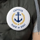 A Personalized Button with your boat name, family name or other desired text and Captain title or other rank as needed. Featuring a custom designed nautical boat anchor, gold style laurel leaves and star emblem on white or easily adjust the primary color to match your current theme. Makes a great gift for Fathers day, Mothers day, Birthday or any occasion.