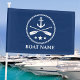 Your Boat Name with Nautical a Unique Anchor & Crossed Oars on Navy Blue or Custom Color Boat or Car Flag.