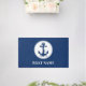 Welcome guests and personalize your boat, home or beach house with a nautical themed area rug with your custom boat name or other desired text. This inviting rug features a custom designed boat anchor with nautical rope and striking typography in white on a classic navy blue base. The design also allows you to easily edit and customize the base and text colors as needed to match your current decor. Available in several sizes with options for indoor or outdoor use.