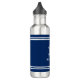 Your Personalized Name, Boat Name or Text with a Custom Nautical Lighthouse on a Navy Blue with Stripes Water Bottle.