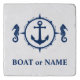 Your Name, Boat Name or Custom Text in Navy Blue with a Boat Anchor and Seahorse on a 6-inch Marble Trivet.