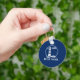 Nautical Your Boat Name with a Classic Lighthouse on a Blue Keychain.