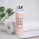 Your Business Logo Website or slogan Custom cute blush pink feminine stylish Water Bottle. A simple modern design in girly colors, for a stylish and professional look. Any color, any font, no minimum.