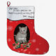 Personalize this red Photo Christmas Stocking for your cat - This is Your cat's own Christmas Stocking -A gradient red background with snowflakes and an Oval frame for your cat's Photo, with a ribbon tied candy cane bough at the bottom - This Christmas stocking has this message written in childlike hand writing: Dear Santa, I have been a good little cat. Please fill my stocking with kitty goodies. Love (and you sign your cat's name)