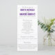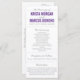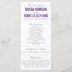 Wedding Program template includes a bridal party of 4 Bridesmaids/Groomsmen, Jr. Bridesmaid/Jr. Groomsman, Ring Bearer, and Flower Girl in gray and purple.
