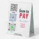 Customize and add your own Venmo, PayPal, or Cash App QR code image to this tabletop Pay HERE sign. Digital payment systems have made paying at boutiques, craft shows, popups, and Farmers Markets so much easier. Scanning a QR code allows people to pay for goods and services through a digital wallet when they have run out of cash. Customers scan your QR code and transfer money right into your account. Safe and secure. This pay-here sign is a must for your small business. Coordinating your small business plan starts with creating a branded look. Message me for creating your custom business cards, price sheets, and merch.