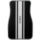Cool men's automotive car floor mats in black and white with a modern racing stripe that doubles as a monogram space you can personalize with any guys name. Designed as a gift for men or gift for dad.
