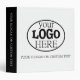 This custom binder features a sample company or business logo placed in the center over a white background. A sample slogan or additional text is printed below. Additional or matching text is printed on the spine over a black background. You can personalize the binder to include your own custom logo or image and text of your choice.