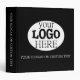 This custom binder features a sample company or business logo placed in the center over a black background. A sample slogan or additional text is printed below. Additional or matching text can be printed on the spine. You can personalize the binder to include your own custom logo or image and text of your choice.