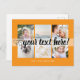 Script with Heart Your custom text 6 photos collage orange universal Postcard. Personalized 6 family collage photos Universal Greetings Postcards featuring a stylish photo collage with 6 customized images, your greetings message in elegant handwritten script font, your name, date, year, message on the back in a modern and simple sans serif font.
