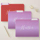 Product is slightly glossy - giving it a bit of liquid resistance. They did curl up a bit because my office is humid, but nothing that I couldn't fix with a paper weight. Standard thickness. I use these to on a three-tier desktop shelf to sort to-dos, to be filed, etc. I loved that they come in a three-piece set. Price wasn't too bad, especially with an easy to acquire 20% promo code and free shipping with ZazzleBlack. It was easy to add my logo and branding colors to these custom folders, after I wasn't happy with any pre-designed folders that I was seeing anywhere else. Colors came out as vibrant as expected. Logo and contact information is crisp and clear.