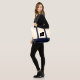 Love the durable cream colored canvas and navy blue contrasted handles. Perfect for carrying my laptop and papers.