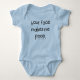 I love this onesie, it's adorable! The material is amazing so soft and the color is a perfect sky blue. When my daughter-in asked me to help with her Baby Shower, I was thrilled. It was co-ed & the theme was Cookie Monster. I had no idea that the whole world was after that big blue Monster. Thank goodness for Zazzle, I got most of the party supplies here. Then I found this onesie! They made my customization so easy. The colors are awesome. I wrote the word "Loved" across the bottom of the Cookie Monster in red letters when I was putting it together. I saw the preview & liked it. But to see it in person, OH, it was fantastic, they do exceptional work! I am so glad that I found this onesie/bodysuit. The production time and shipping were exactly what I was told, which made it easy to plan the party. Packaging was nice as well. If you are looking at this product, look no further, I highly recommend it! I'm certain that I'll be back to "design" whatever my new Grandson "needs.". The printing on the onesie/bodysuit is crisp, and clean. With perfect colors that blend well with the blue background of the basic material. We are so happy with how it came out.