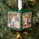 Your Family Photos 4 Photo Collage Green Plaid Cube Ornament