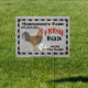 A country style design, with an image of a chicken on the left with chicken wire behind it, seven beautiful white eggs under the black and red text "FRESH EGGS". There is a black checkered border around the outside, all on a weathered wooden board. Personalize the front and back of these fresh eggs, chicken farm signs with your farm name, telephone number and price on the front and back of the sign. You can change the words to whatever you like.