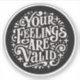 Your feelings are valid mental health support emotional validation black and white aesthetic therapist therapy quotes gifts sticker laptop accessory room decor.