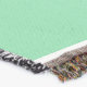 A quality printed throw has its advantages. This is a much finer weave throw than its loopier cousins, and though lighter, it is worth the investment for custom room accessorizing. The back is much prettier than the typical brown, and the fringe on the long sides very vivid, the selvage nicely done. Before photographing, I washed the throw in cold water, delicate, with a thicker woven throw the same size. On tumble dry low, this throw was dry in half the time as the other. This is a very practical quality if you use throws for furniture covers or to wrap up in frequently. The sleekness of the fabric makes it a great layer for accenting or protecting without the feeling of sitting on too much stuff. Perfect for napping or when you feel a light chill coming on. The color printing is beautiful and on this fabric, matched the design and color of my Photoshop image. This is an advantage for blending room fabrics and colors. The fringe on the short sides prints the colors from the design image and therefore varies from the side fringe. I streaked a white fractal line through the plaid pattern to give the illusion of weaving. This printed as crisp as an illusory thread, and put some white in the short side fringe, showing another advantage of print vs loomed- for artistic purposes, line lines, detail, and color integrity can be planned and preserved. My loomed throws have color limitations and more of a needlepoint texture. Print throws reproduce an exact image. The throw felt a little stiff straight out of the package, but this went away in the first delicate wash. Of course I searched the wash water for ink or bleeding and there was none.