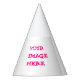 Place your custom image (picture or graphics) onto this party hat template. This custom party hat design can be personalized with a name or customized with your own unique message. Custom party hats are great for birthdays, graduations, or other fun gatherings.