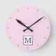 Your Letter. Custom Monogram. Pink Black White. Round Clock