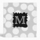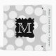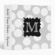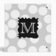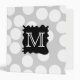 This design has a black splat shape and white monogram letter, on a pattern of white spots on light gray. The initial letter can be personalized. A fun monochrome design.