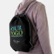Your Logo/Art/Photo, White Script Name, Black Drawstring Bag