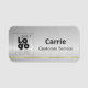 Easily personalize this custom name tag with your own company logo, employee name, job title, or other custom text. It's plastic and available with a safety pin back or a magnetic back fastener (do not use magnet with pacemakers).,and features a platinum silver simulated metallic gradient print. No minimum order quantity and no setup fee. This style includes one thin line of gold at the bottom