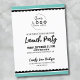 A fun but simple black and white invitation for a business grand opening or a brand or product launch party event. Add your own logo to the top to give it your branding, and you can change out the teal or turquoise coloring to black or match your brand colors. You can even change the scallop colors. A simple scallop edge for a playful touch that isn't too much. You can change out all of the text and backgrounds to any color, and you can even change to other fonts that fit your branding better. So whether you are launching a new product for your business, or a collaboration with a social media influencer, opening a new boutique, or even having an open house or corporate event, you can make this your own. Your Logo Grand Opening Business Launch Party Postcard