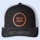Custom Leather Patch Hat, Sytle: Adult Retro Trucker Cap, Color: Heather / Black, Shape: Circle