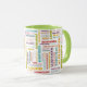 Tired of people using your mug in the break room? Create a very extremely personalized coffee mug. Your custom name appears all over this mug in a collage of different fonts and lettering styles. Lettering in red, yellow, orange, lime green, turquoise, pink and purple is set against a white background.