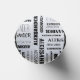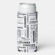 Create a very extremely personalized can sleeve. Your custom name appears all over this tall foam can wrap in a collage of different fonts and lettering styles. Black lettering is set against a white background.
