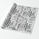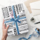 Create a very extremely personalized wrapping paper. Your custom name appears all over this gift wrap in a collage of different fonts and lettering styles. Black lettering is set against a white background.