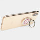 The piece to peel off is on the entire back of the grip when received, though it's not super easy to tell, just lift carefully with a fingernail end and peel off. The grip sticks well to the phone, is very stable and immobile once adhered. Know exactly where you want it before pressing it on. The printing was fine, colours were quite true to what I saw on my personal screen. Fine small lines turned out well. The artist's Mandala design is gorgeous.