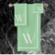 Add your /his monogram to this simple towel set in solid green ash( #A0DAA9) and white . From the store of lumirala . Personalized gifts are always a good idea !