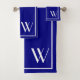 Add your /his monogram to this simple yet elegant towel set in (#000080) navy blue&white . From the store of lumirala . Personalized gifts are always a good idea !