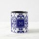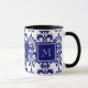 Your Monogram, Navy Blue Damask Pattern 2 Mug