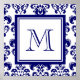 Your Monogram, Navy Blue Damask Pattern 2 Poster