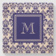 Your Monogram, Navy Blue Damask Pattern 2 Stone Coaster