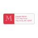 Your Monogram, Red and White Return Address Label. Customize with your address information. Perfect for wedding invitations.