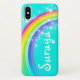 Pretty rainbow with aqua teal sky girls iphone case. Personalize with your child's name up to 6 letters, perfect short names or nicknames. This example reads Suraya. Exclusively designed and illustrated by Sarah Trett. www.sarahtrett.com for www.mylittleeden.com