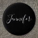 Your Name | Elegant White Script on Black Button