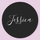 Your Name | Elegant White Script on Black Classic Round Sticker