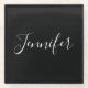 Your Name | Elegant White Script on Black Glass Coaster