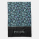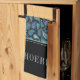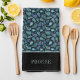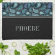 Kitchen towel featuring a personalized name prin on an elegant classic blue abstract floral retro paisley pattern.