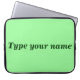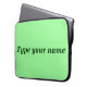 Light green laptop sleeve that you can personalize by typing your name. You can also change the font style, font color and the laptop sleeve color in the design tool. Please check the appearance after typing your name. If the appearance is pleasing to you, you can place your order now. If you need to resize or reposition your name, please adjust in the design tool.